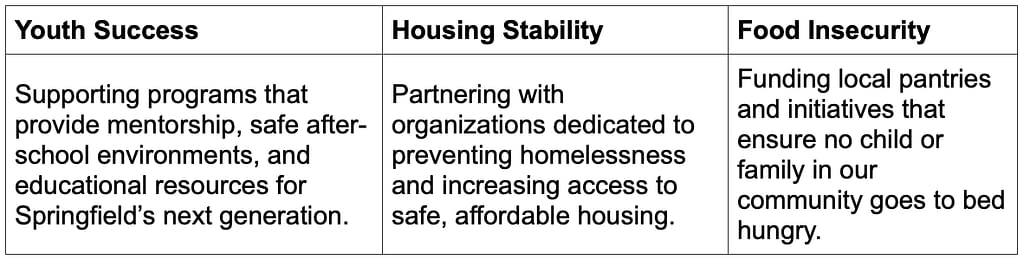 In 2027, these funds will be distributed to Springfield and other communities we serve who working on the front lines of community’s most pressing needs.